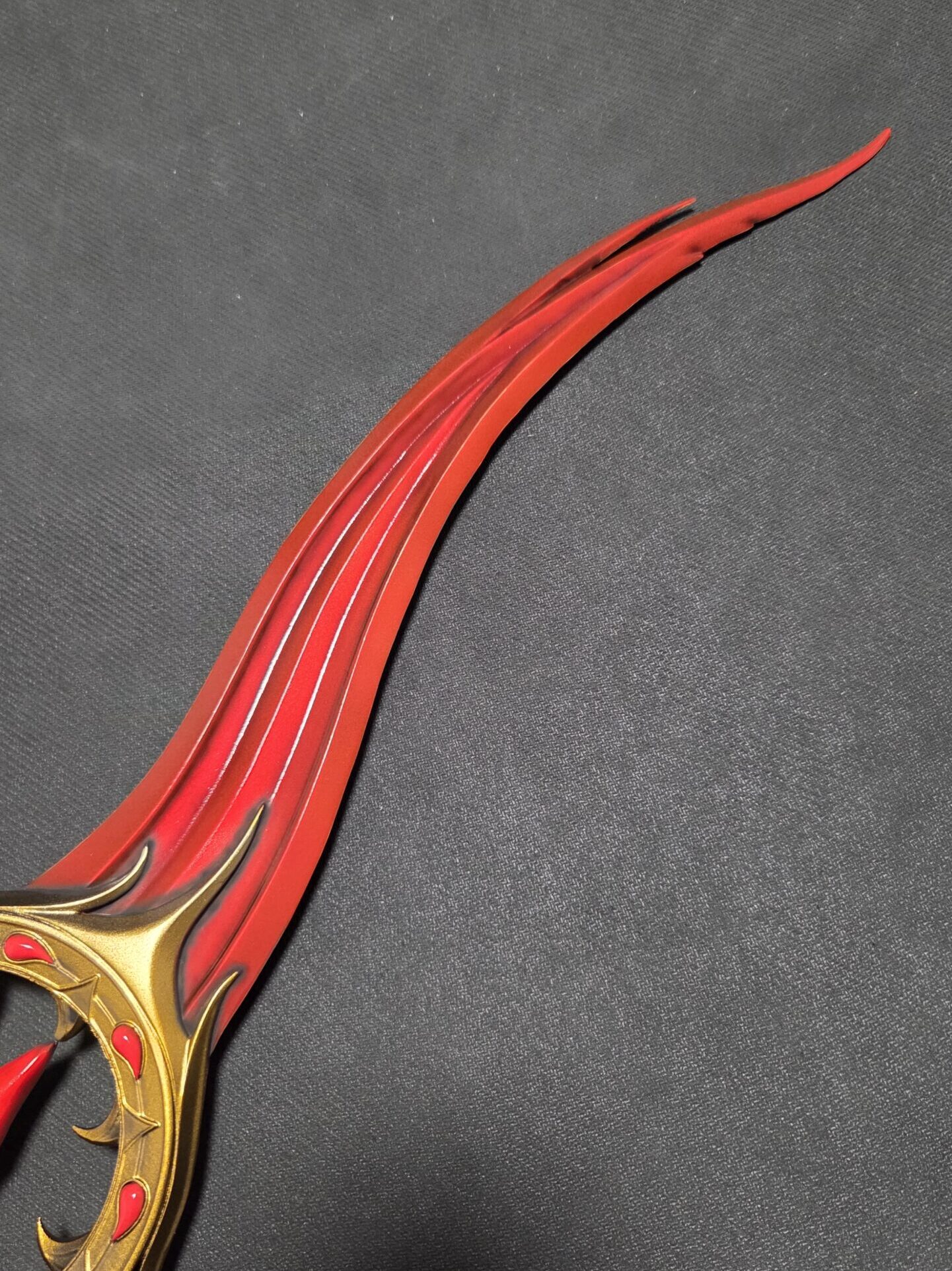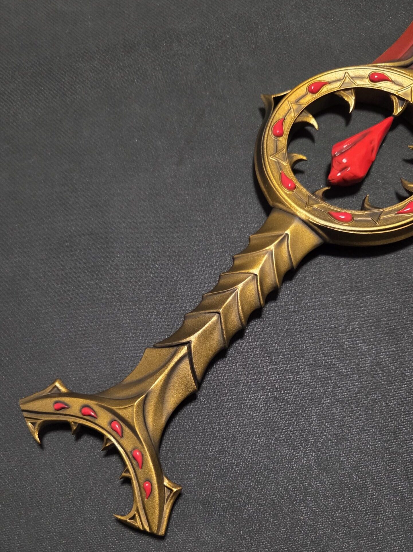 Every Bloodthirst Dagger Replica is engineered for both visual impact and durability. 3D-printed from high-quality ABS+ plastic, the prop undergoes a meticulous three-stage manual sanding process to ensure a flawlessly smooth surface. It is then hand-painted using a combination of airbrushing and fine brush work to replicate the organic, bone-like texture and the wicked, iridescent sheen of the in-game model.
