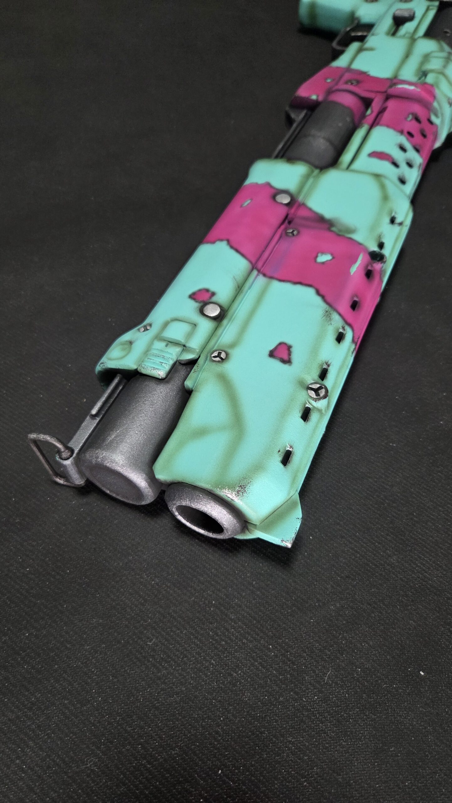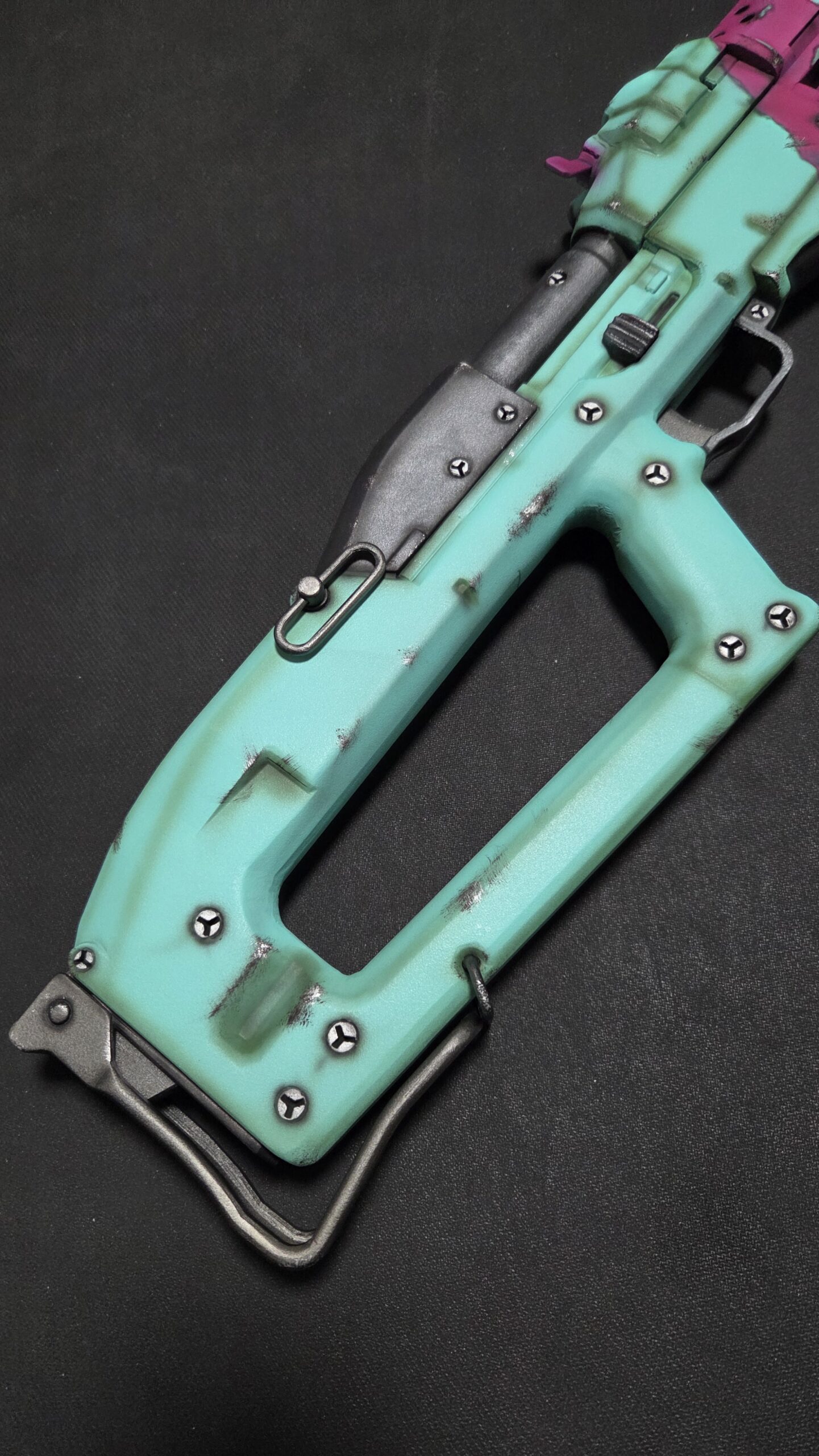 To ensure this Rebecca’s GUTS Shotgun feels as substantial as it looks, we built it around a central metal pipe core. This provides excellent structural integrity, preventing the barrel from warping or snapping during intense cosplay sessions or conventions.